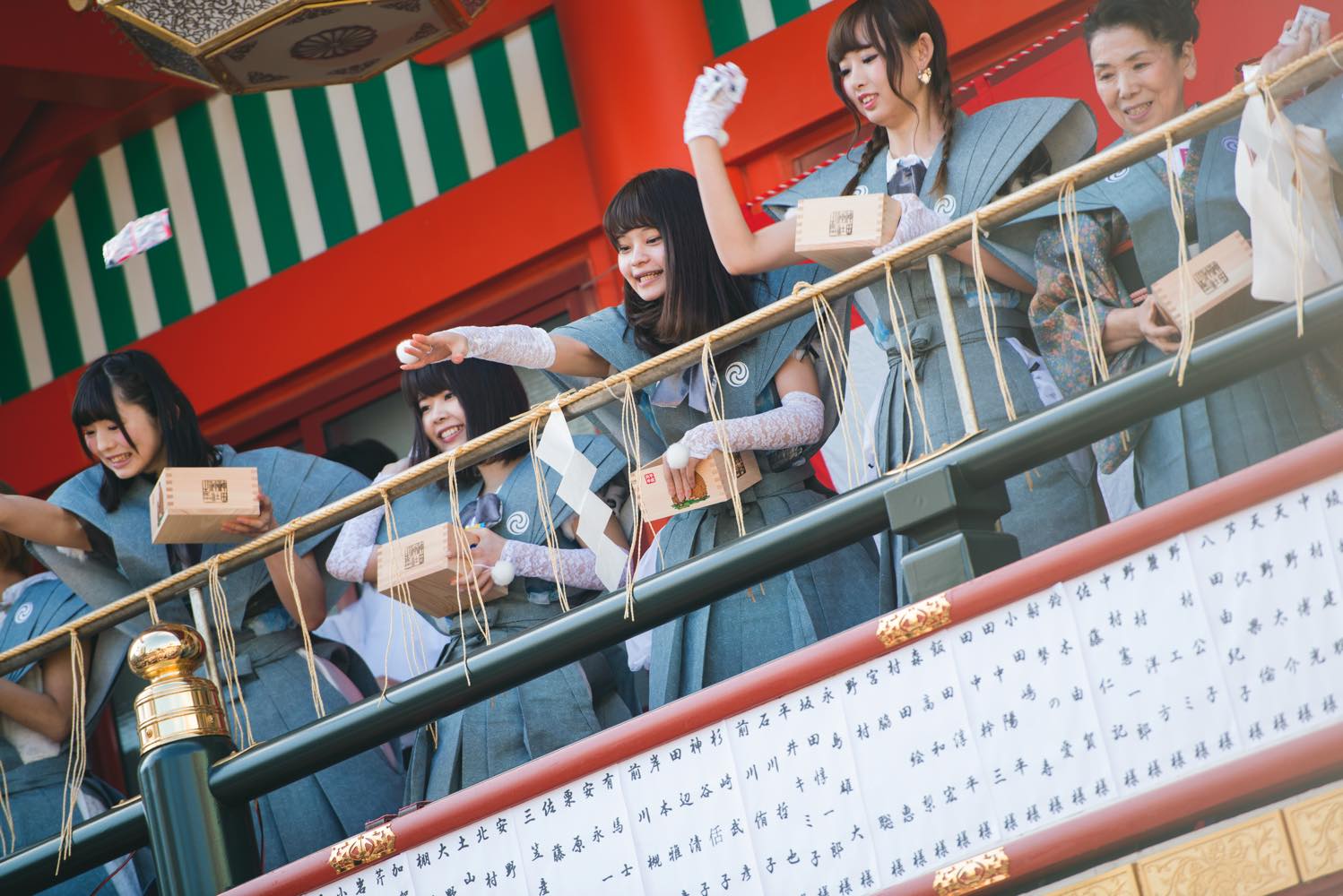 Mr. Kishikawa: Well, there’s not a particular correct way, but at the Kanda Shrine we throw sweets along with beans. (laugh) So I think you should aim to throw them out to everyone as much as possible.