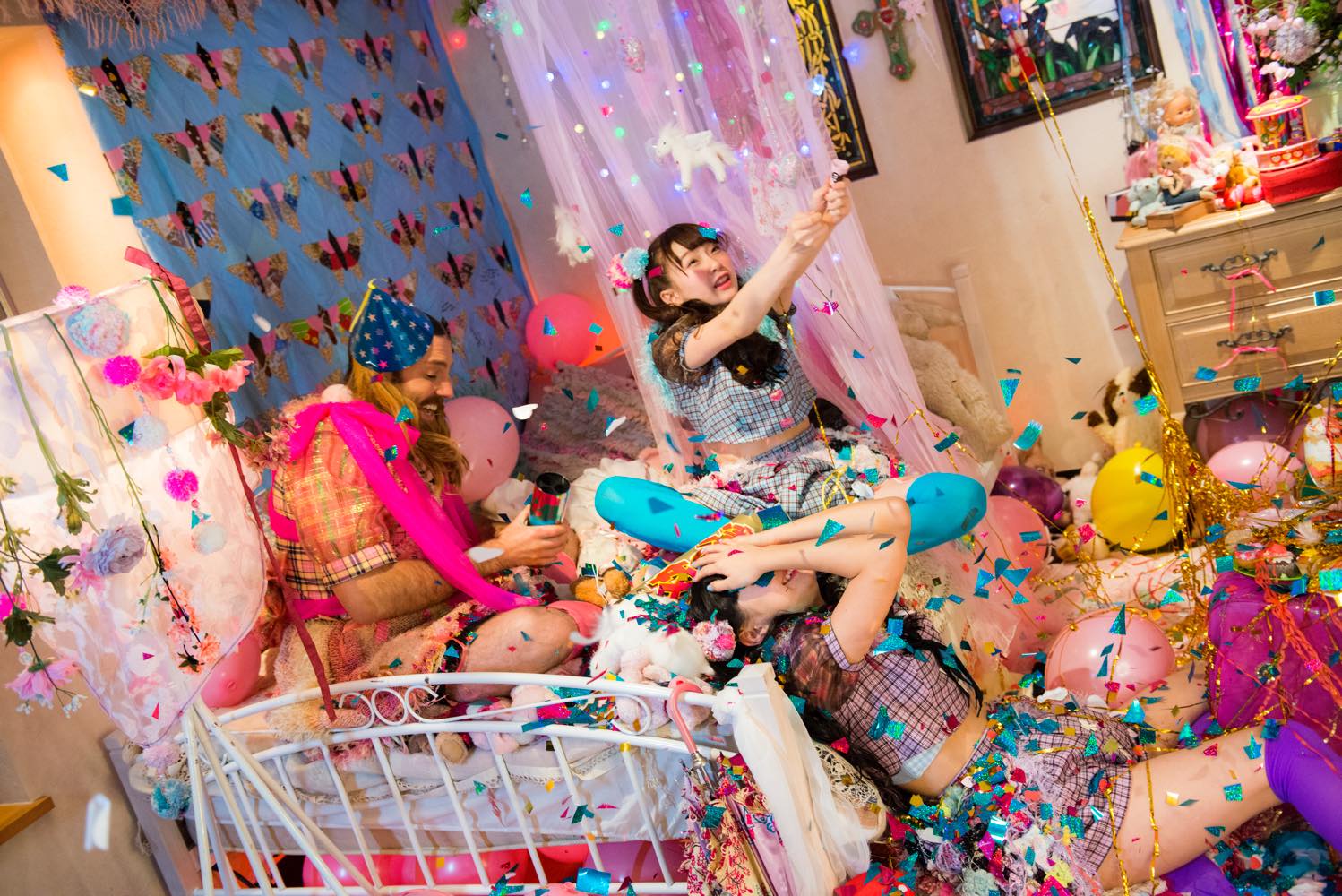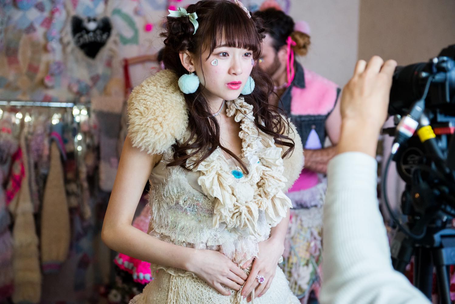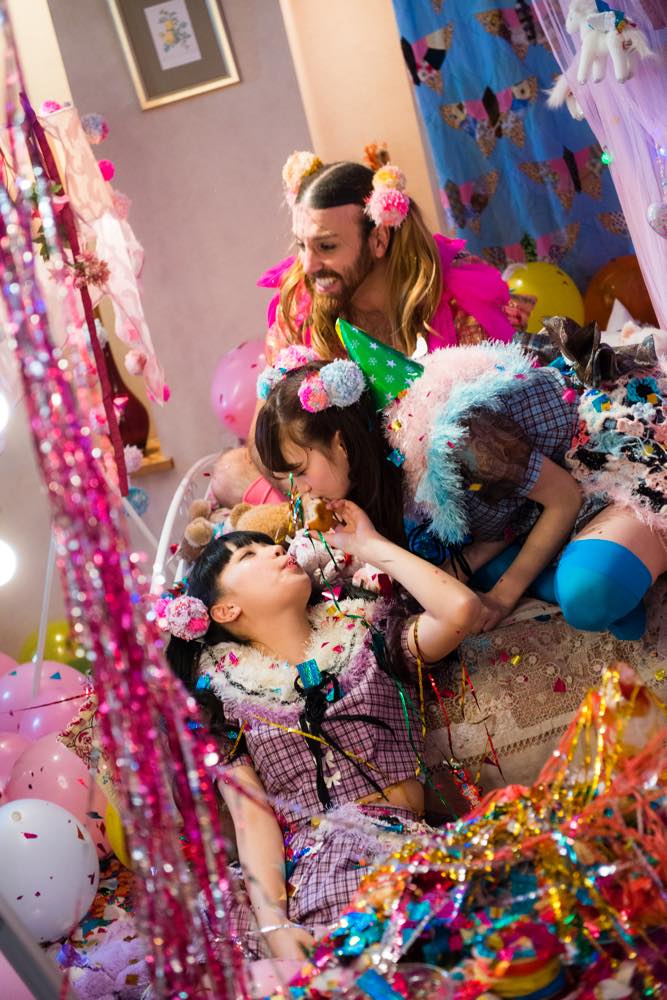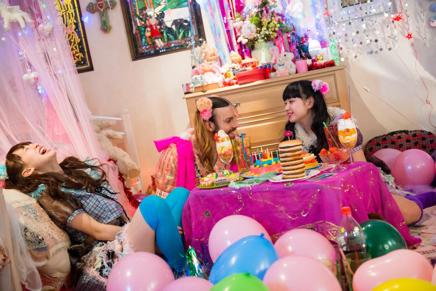 そうですね、風船とかも。あと劇中のコンビニのキャストの子たちは、みんなホワイトコスプレを着てるんですよ。全身白。ドレスコードが真っ白のフェスがヨーロッパで流行ってるっていうのを聞いて(編注:「Sensation」というオランダ発のEDM系音楽フェス)。だから日本でも白コーデコスプレ作って売ったら良いんじゃないかっていう、クリアストーン(LADYBABYがPRしているコスプレ会社)のプロモーションの意味も込めて、オールホワイトにしてみました。