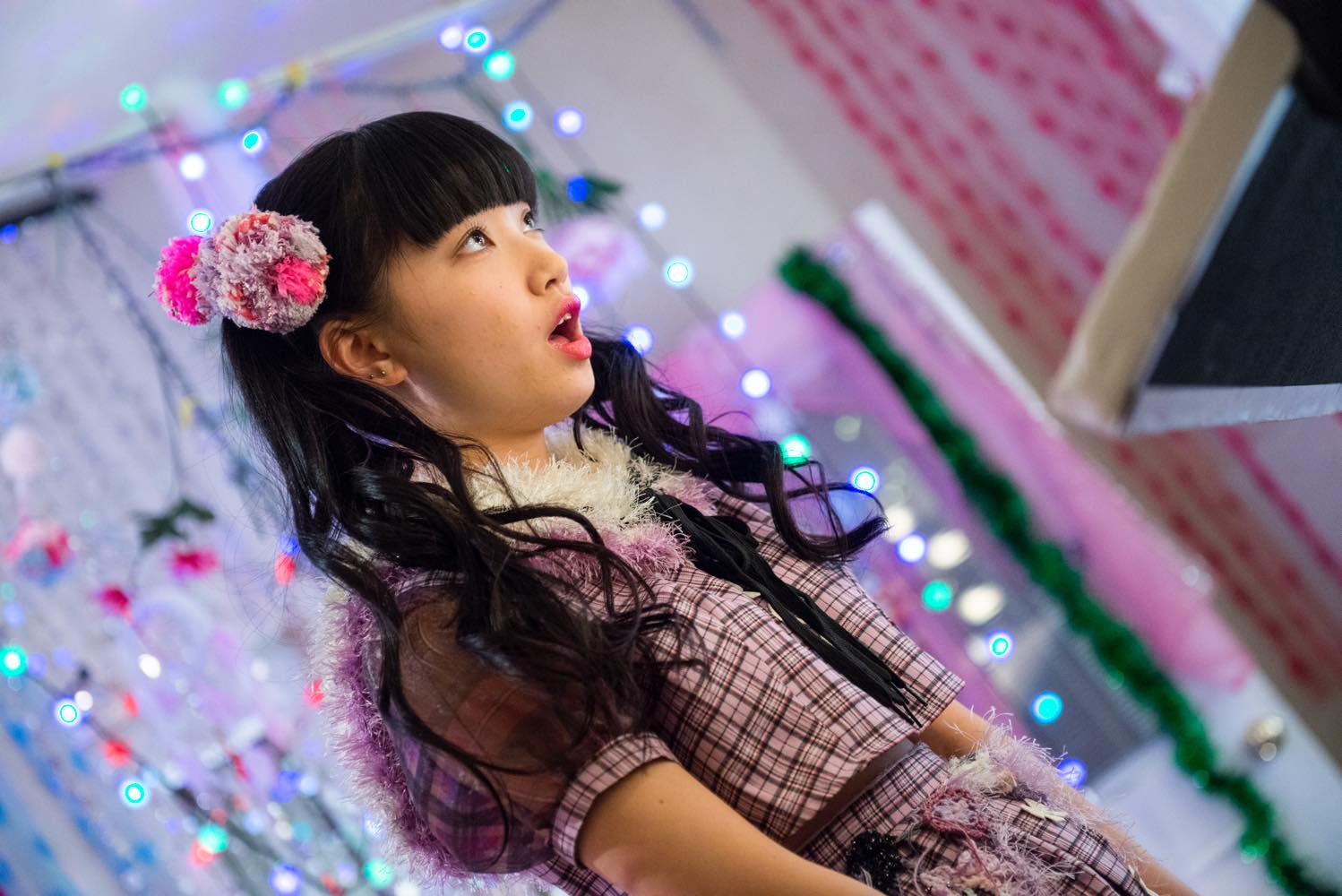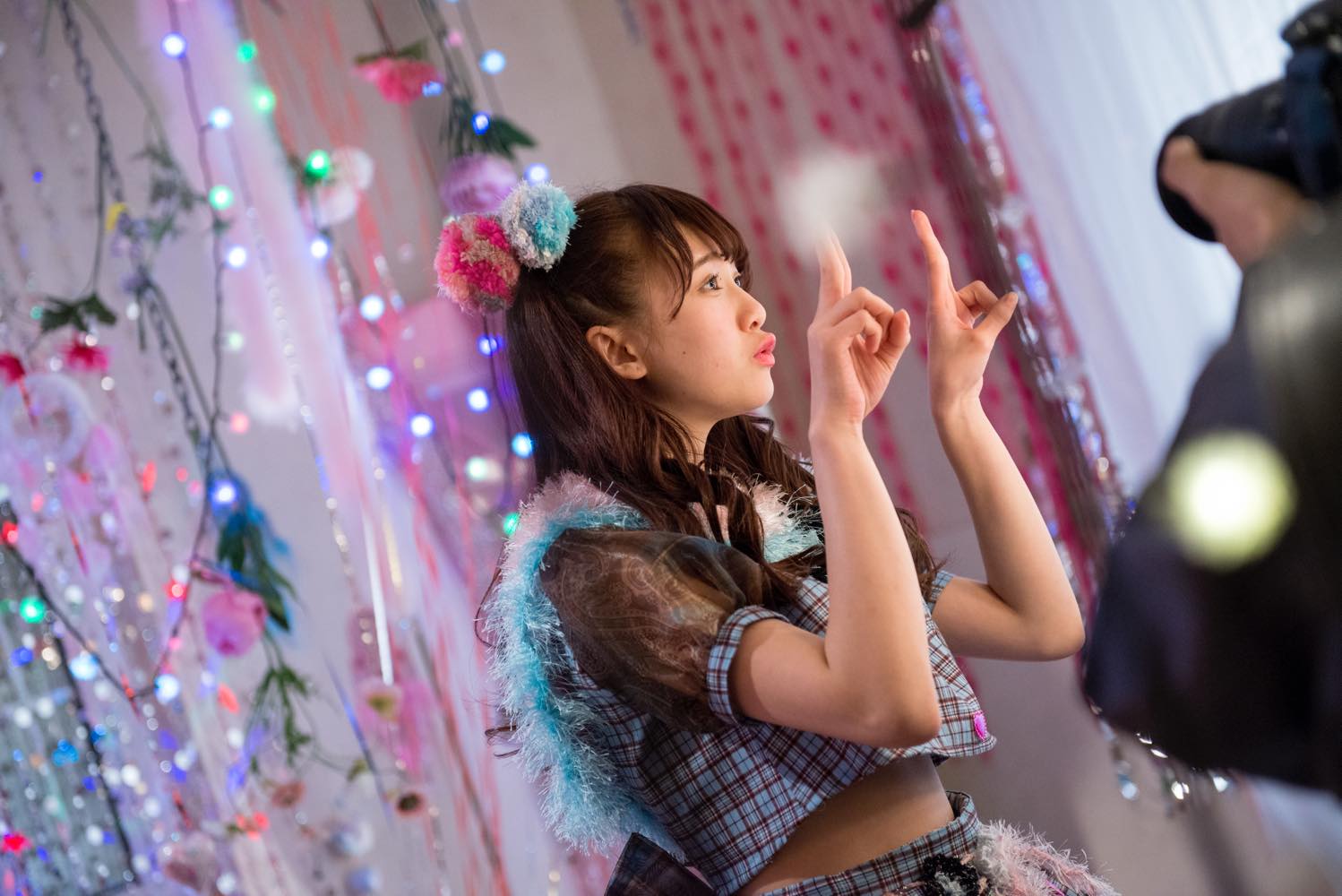 I made it, so that it will be popular towards girls, and I considered about the member’s taste in colour as well. Not only the colours, but I thought about the member’s preference. I’m used to watching their clothes. Rie always does choker, so I put those kinds of things in the costume. I think costume is one of the motivations for Idols. It’s better to choose the colour which you like than what you hate. That’s why I hope that I can help them.