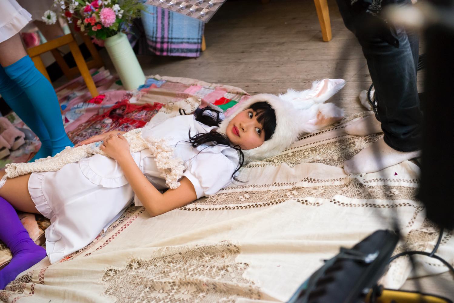 Yes, including the balloon. Also, the casts during the play inside the convenience store are all wearing a white cosplay. All white. I heard that having a white dress code is on trend in Europe’s festival (Editor’s note: “Sensation”, an EDM type music festival originally from Holland). That’s why, I thought selling a white coordinate cosplay will be a good idea in Japan as well, so to promote Clearstone (the cosplay company that LADYBABY does PR) I made it all white.